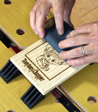 We branded cover face, finished with sanding. There is slightly difference depending on item doneness or uneven browning from the nature of the wood unlike print.