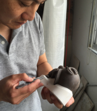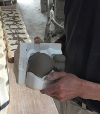 These days prototype is made with CAD or 3D printer but this product was made of clay by model sculptor same as common pottery products.