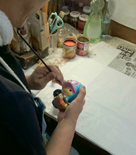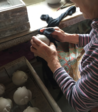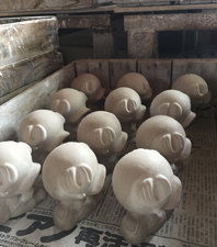 The forming method is Gaba-casting that barbotine casts to plaster mold, drys clay, polishes one by one. The painting is polished by specialized doll painter.